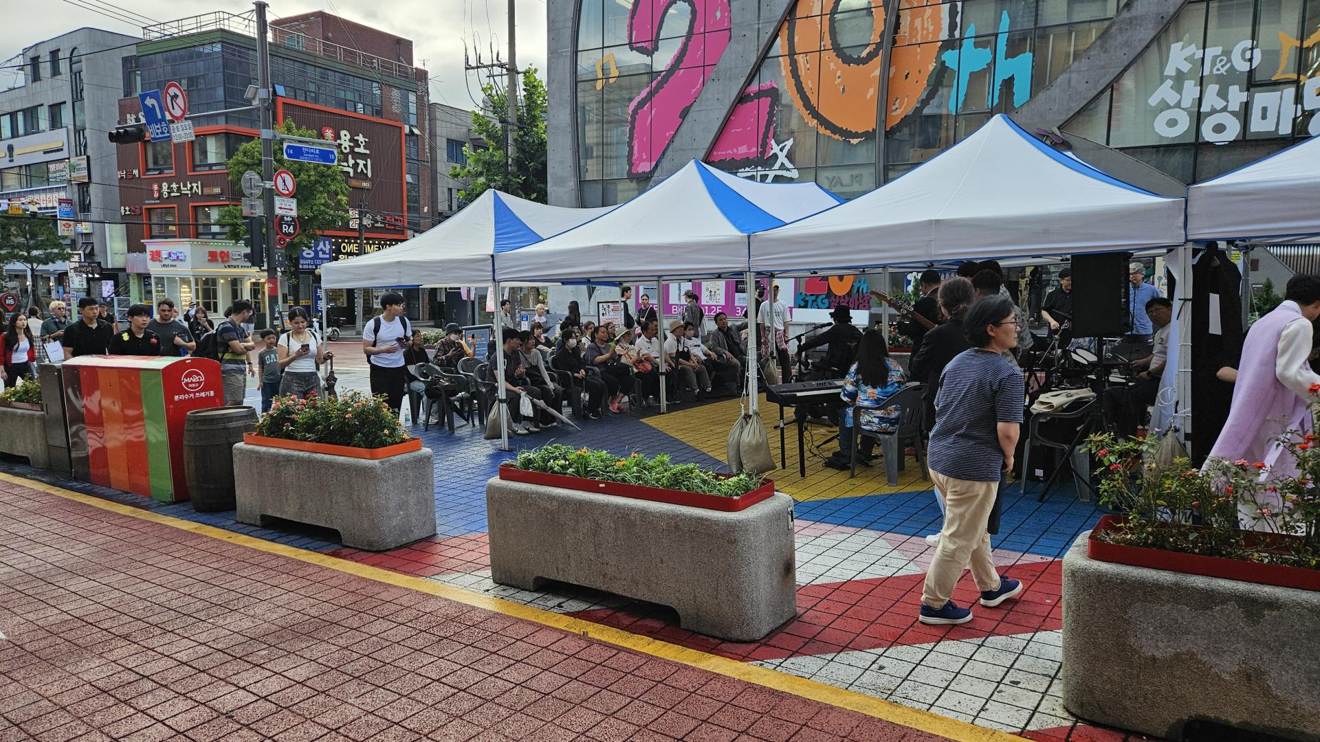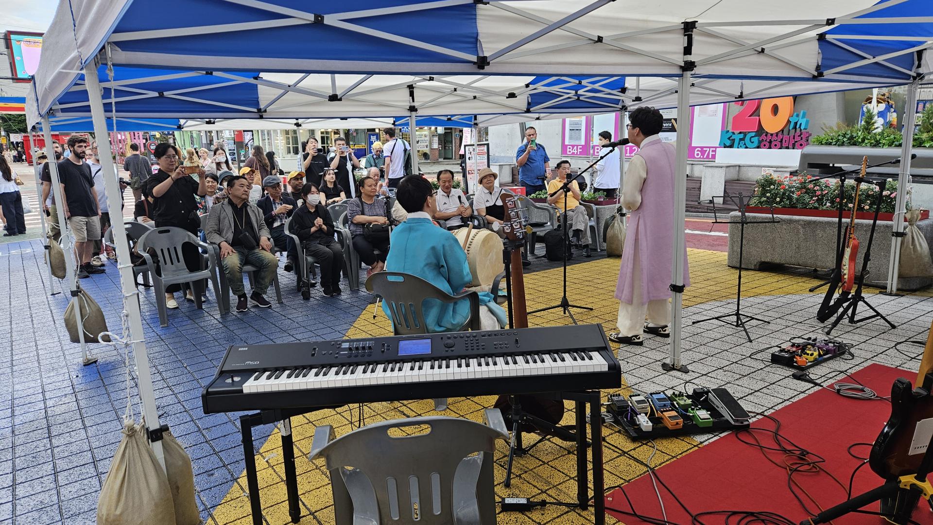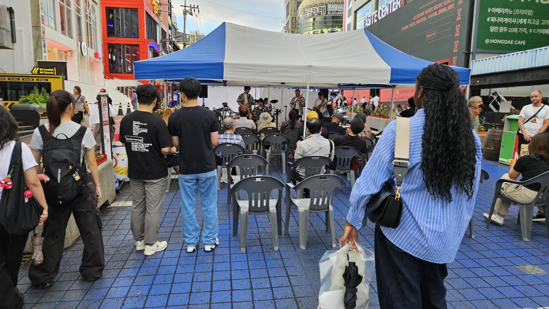 공연 시작 전 퍼붓던 비는 기적처럼 걷히고 맑은 하늘이 드러났다. 악조건 속에서 시작된 공연이었지만, 젊음이 넘쳐나는 거리 위에서 펼쳐지는 열기는 그 어떤 어려움도 이겨낼 만큼 뜨거웠다. 열심히 준비한 무대 위, 악기 소리가 울려 퍼지고 노래가 시작되자 사람들의 시선이 모였다.