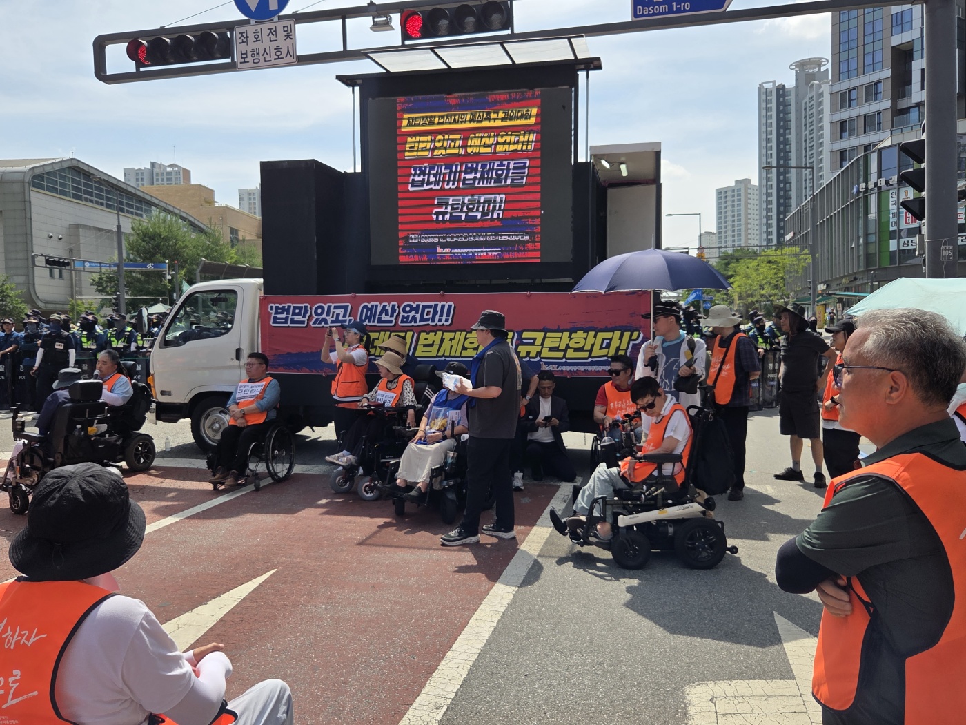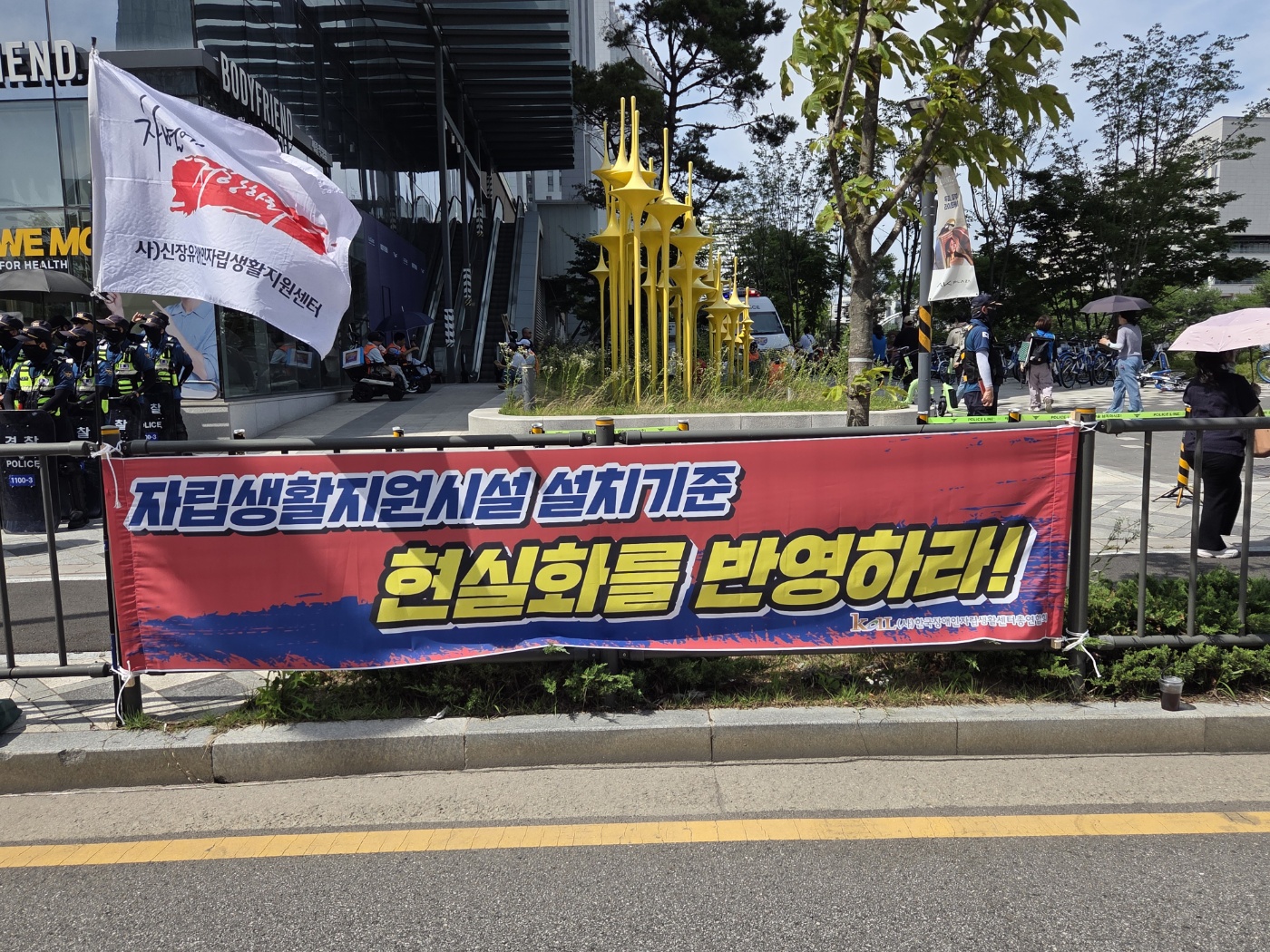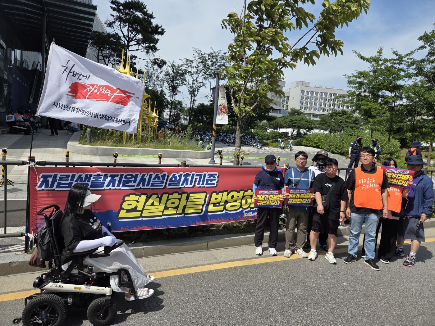 지난 7월 3일, 맑은센터의 활동가들이 천안시 세종정부종합청사 보건복지부 앞에서 열린 '장애인자립생활센터 법제화 예산촉구 결의대회'에 참가하였습니다.