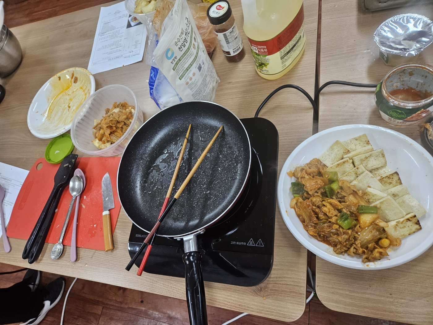 강사 쉐프님께서 가르쳐 주신 대로 요리하여 모두 맛있는 두루치기를 만들 수 있었습니다.